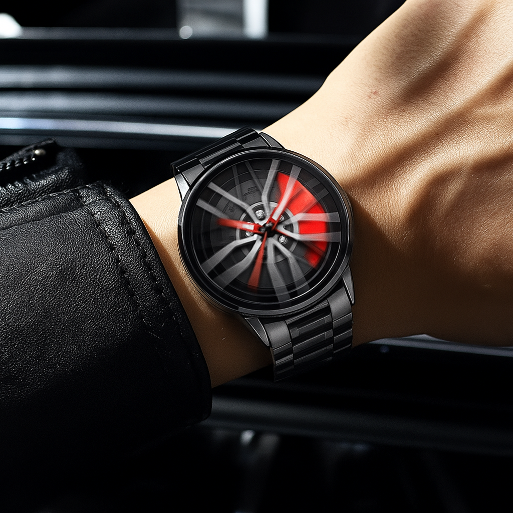 Dale un giro total a tu look con el Reloj SpinnerTime™, diseñado para los que viven la velocidad. Su esfera inspirada en una llanta deportiva giratoria no solo marca la hora, sino tu actitud. Ideal para fanáticos del motor, la adrenalina y el diseño único.